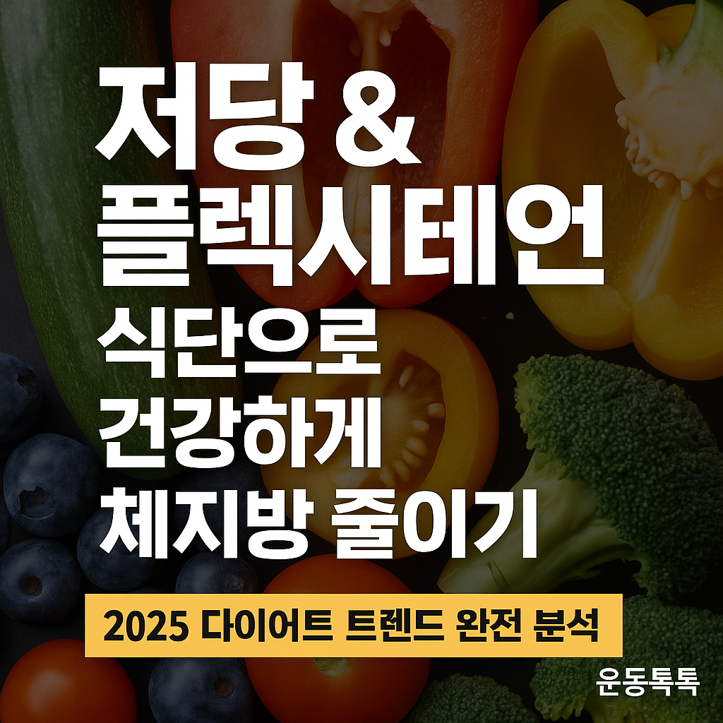 저당 & 플렉시테리언 식단으로 건강하게 체지방 줄이기 — 2025 다이어트 트렌드 완전 분석“살은 빼고 싶은데, 건강까지 챙길 수 없을까?”2025년 현재 다이어트 키워드의 중심에는 저당 식단, 플렉시테리언, 그리고 슬로우에이징이 있습니다. 단순히 체중 감량을 넘어, 혈당 관리·지속 가능성·노화 예방까지 고려하는 방향으로 진화하고 있는 것이죠. 이 글에서는 최신 트렌드를 과학적 근거와 실천 팁을 곁들여 15,000자 내외로 풀어내겠습니다.1. 왜 지금 저당 다이어트인가?한국인은 평균적으로 권장량보다 두 배 가까운 당을 섭취합니다. 설탕과 단 음료, 가공식품의 범람이 혈당 스파이크와 인슐린 과다 분비를 만들고, 이는 곧 체지방 축적으로 이어집니다. 저당 다이어트는 단순히 “당 줄이기”가 아니라, 혈당 곡선..